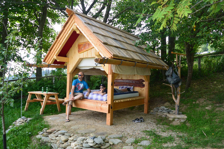 Unser Bett im Freien befindet sich direkt neben der Kronaushütte und der Sommerrodelbahn, jedoch blickgeschützt. Reisen Sie mit eigenem Schlafsack (eine Luftmatratze können wir zur Verfügung stellen) an und genießen Sie vom Bett aus einen herrlichen Blick nach Wien und ins Feistritztal, zählen Sie die funkelnden Sterne am Himmel oder beobachten Sie gemütlich eingemummelt den romantischen Sonnenaufgang. Achtung: Die Möglichkeit zu duschen besteht nicht.